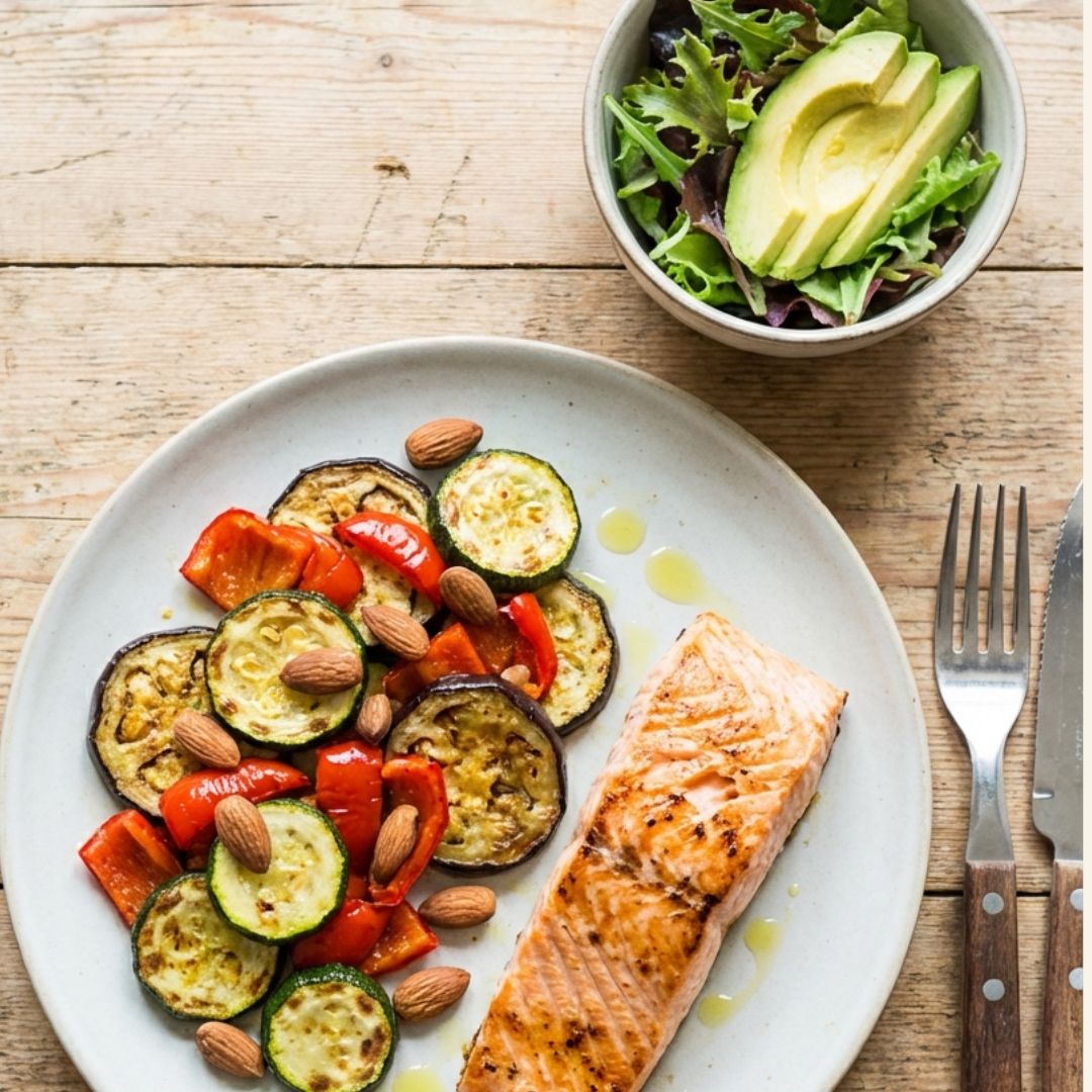 V běžném dni se vyplatí držet jednoduchou strukturu. Stačí jeden zdroj bílkovin, jeden až dva zdroje vlákniny, typicky zelenina nebo luštěniny, a jeden zdroj tuku. Taková kombinace je přehledná, dobře stravitelná a dává tělu jasný signál, co z jídla získá. Není potřeba skládat talíř z desítek položek, důležitější je, aby jednotlivé složky dávaly smysl.